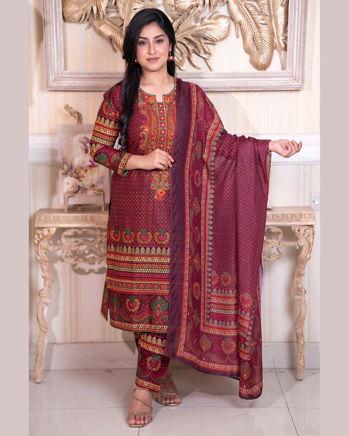 প্রোডাক্ট সেটঃ কামিজ, সেলোয়ার, ওড়না।