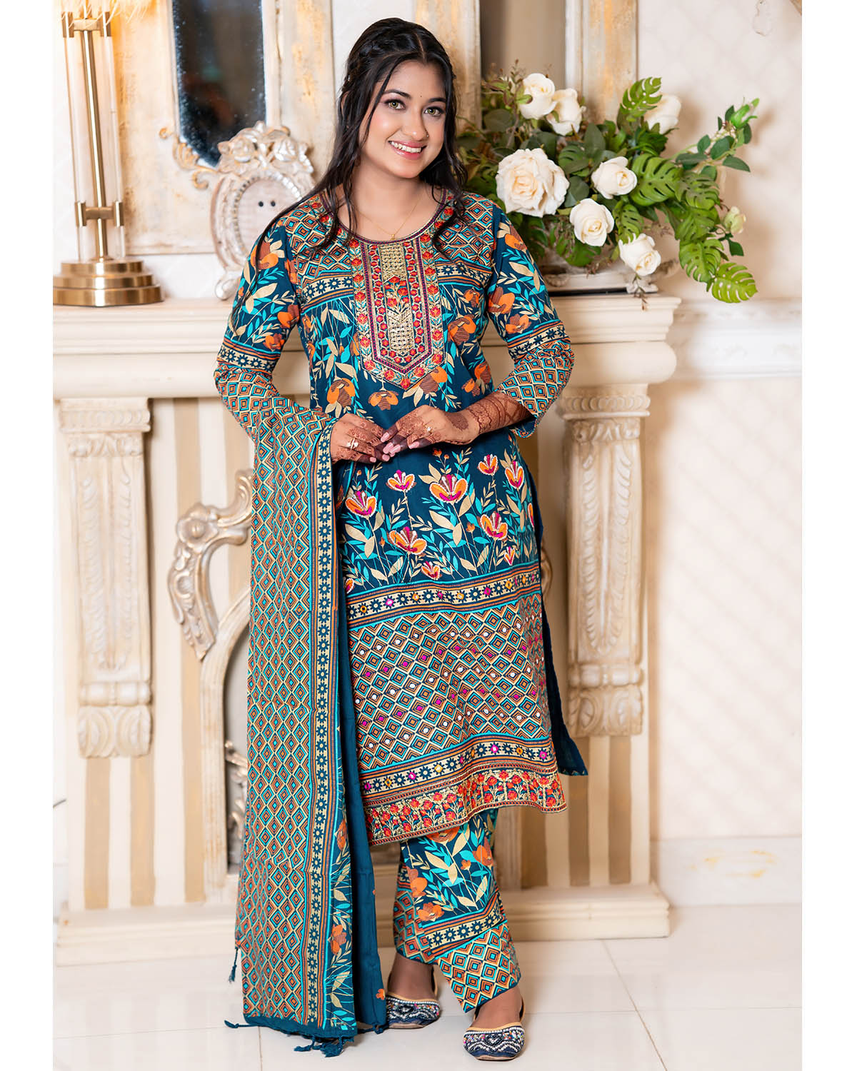 প্রোডাক্ট সেটঃ কামিজ, সেলোয়ার, ওড়না।